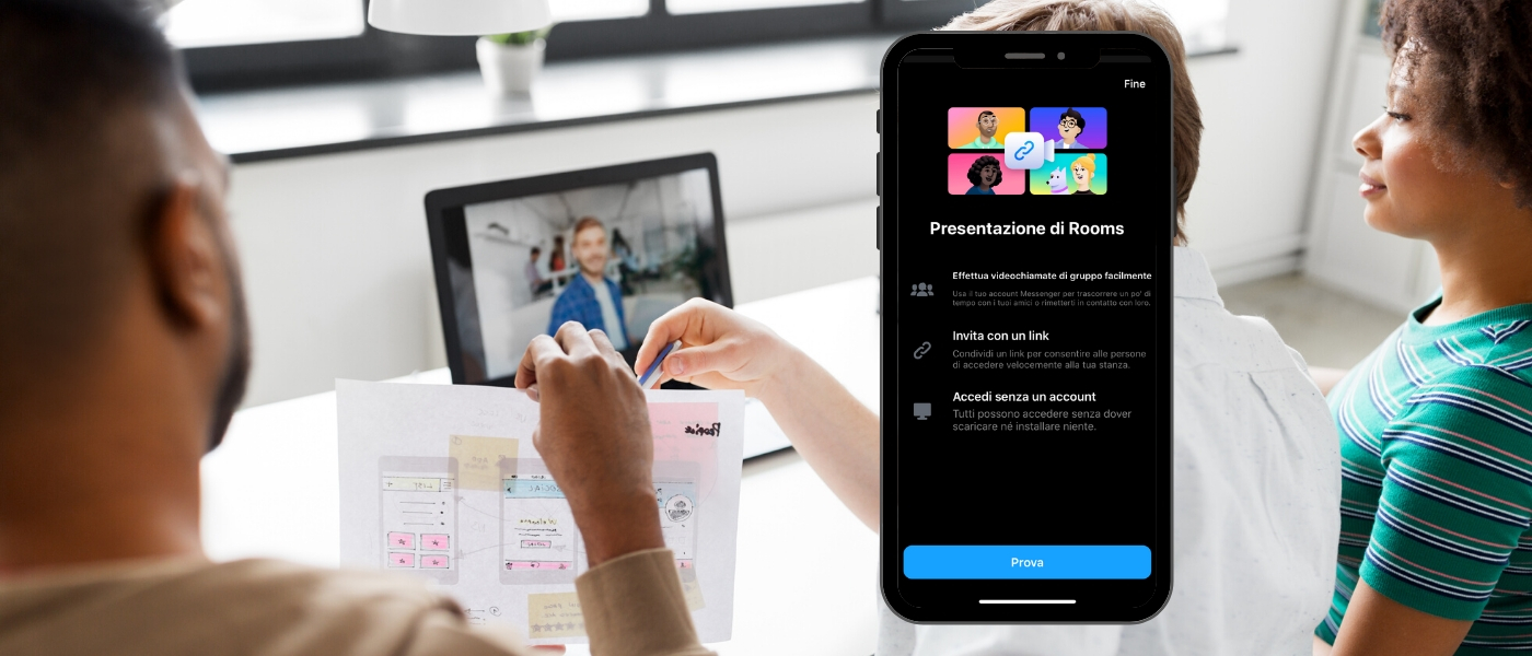 Messenger Rooms รจย disponibile in test in Italia giร  da pochi giorniย (per poi estendersi a livello globale) e potrร  essere utilizzato su smartphone, tablet e computer.