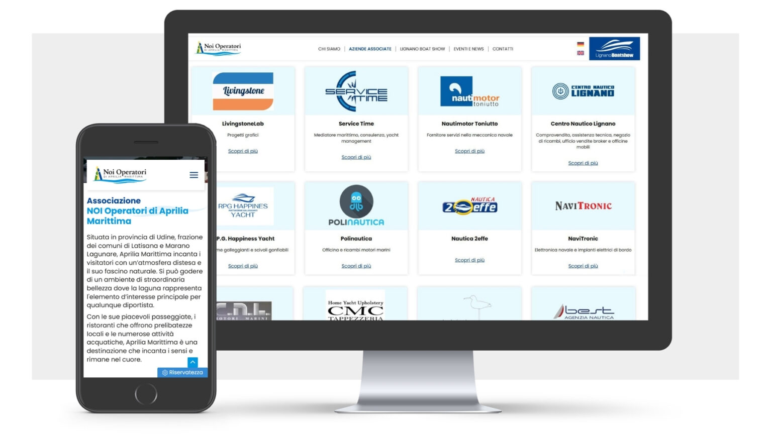 Grazie a questa soluzione integrata, l’Associazione Noi Operatori di Aprilia Marittima ha potuto rafforzare la propria identitร visiva, migliorare la visibilitร online delle aziende associate e promuovere efficacemente le sue iniziative, come il Lignano Boat Show, con un impatto significativo sulla comunitร locale e sui visitatori.